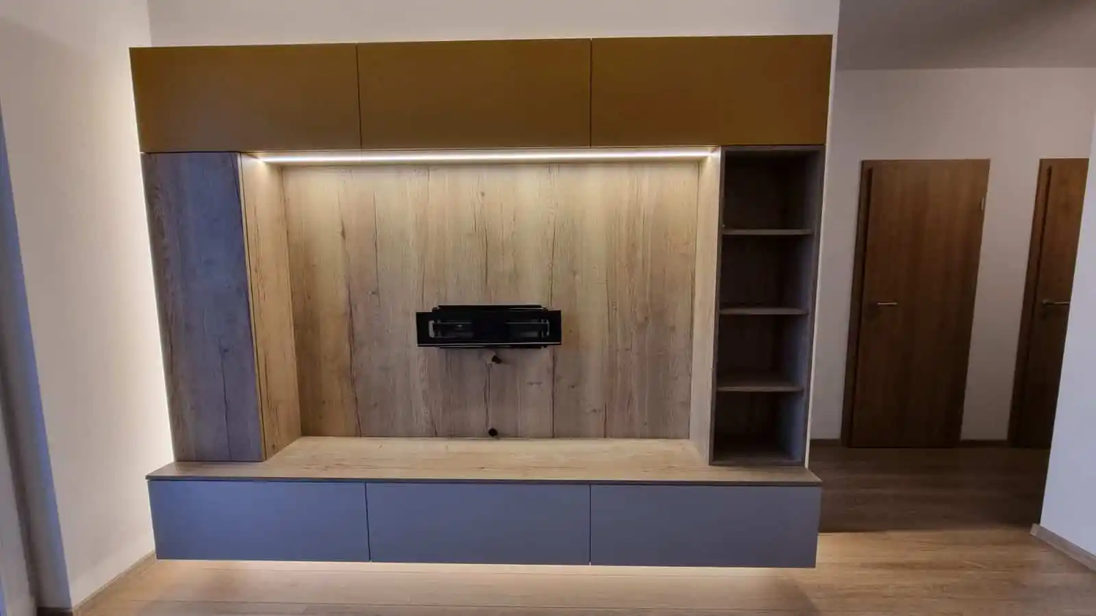 Obývačku môžete jednoducho zladiť s ďalším nábytkom na mieru – napríklad s kuchyňou, predsieňou či pracovňou. Výsledkom je harmonický interiér, ktorý pôsobí premyslene a elegantne v každom detaile.